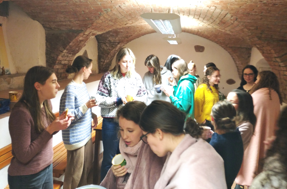 Po glasnem odštevanju, Händlovi melodiji rogov in prvem občudovanju je sledilo prijetno druženje ob domačih dobrotah v igralnici, ki je nas – študentke in sestre – ponovno povezalo med seboj.