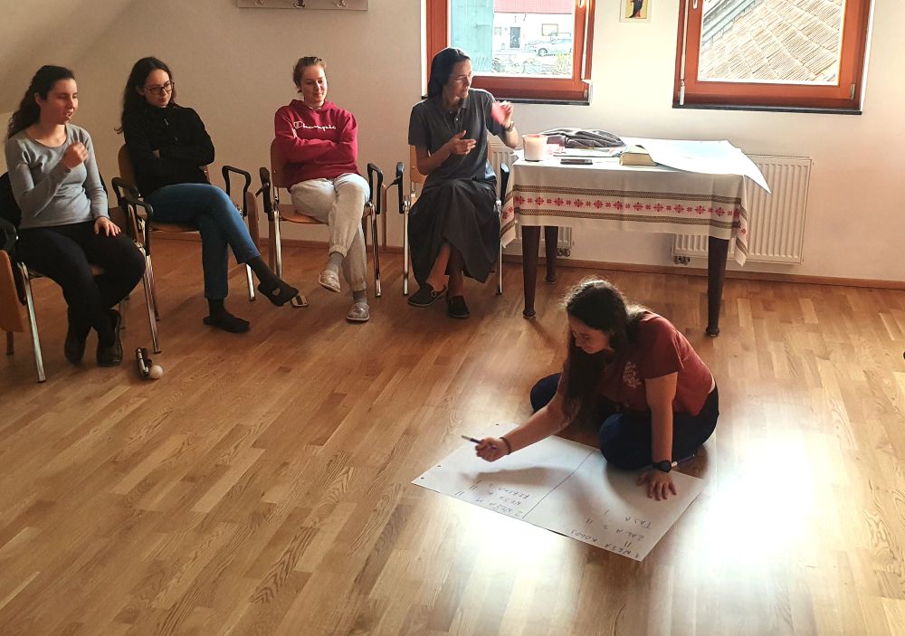 Dopoldne smo posvetile delavnici o komunikaciji in reševanju konfliktov, kjer smo skozi krajše prizore prikazale vsakdanje situacije iz doma ter skupaj iskale dobre načine za razumevanje in sodelovanje. Popoldne smo na sproščenem sprehodu ob jezeru nadaljevale druženje in pogovore, nato pa izvolile novo predsednico in podpredsednico doma ter zbirale ideje za prihajajoče dogodke, delavnice in molitve.